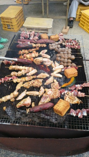●やきとり ここ数年恒例の自分たちで串にさします。