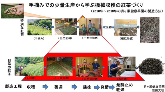 2001年に初めて紅茶づくりを開始した時から、茶刈機で収穫した量の茶葉を製茶できる規模で試行錯誤を繰返しながら生産を進めてきました。しかし、品質を追究した紅茶も作りたくて、2008年から手摘みでの少量生産の紅茶づくりも始めました。機械収穫の紅茶は「日常の紅茶」、手摘み紅茶は「特別な紅茶」として、手摘みでの生産量は機械収穫の1%未満の割合でしたが、手摘みで教科書通りに紅茶を作ることで、機械収穫の紅茶の品質を手摘み紅茶に近づけていきたいと考えました。