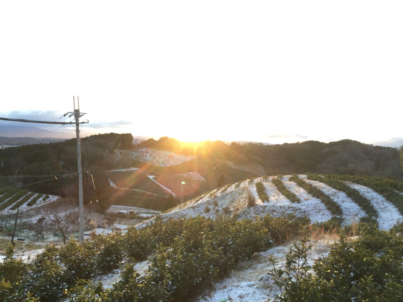 2022年は、ほんの薄っすら雪化粧した景色で元旦の朝を迎えました。今年は、3年生の実生幼木茶園が育つコイキビロ上茶園の頂上から、いろいろな樹齢・品種の茶樹を観ながら初日の出を迎えました。2017年に月ヶ瀬の茶山に自らの手で初めて種を蒔き始めてから5年が経ち、まだ幼木園ではありますが、少しずつ収穫を始められる状態にまで育ってきました。
