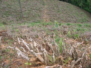 今春、母樹園として管理しているアッサム系紅茶樹の品種園の樹高が高くなってきたので、インドやスリランカで視た中切方法に習って刈り込み作業をしました(写真3)。しばらく観察してみます。