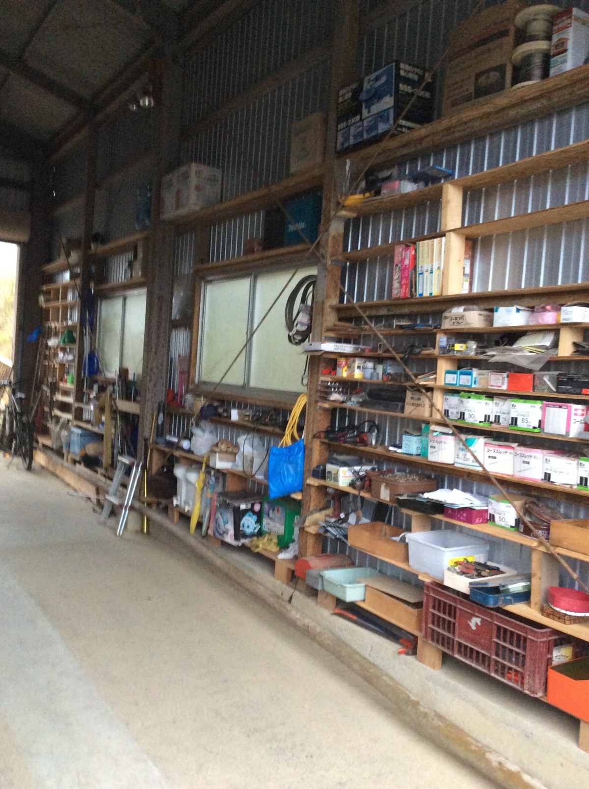 そこで、今度は趣味や生活で使う道具も整理・整頓したいと、鉄骨倉庫の壁の空間を活用して、日曜大工で棚をつくりました。これ迄、いざ、「釣りに行く時」「作業をする時」「屋外調理をする時」等に、道具を探したり、持って行き忘れたりする事もありましたが、今後は、必要な道具を即座に準備出来るようになると同時に、大事なことを子供達にも伝えることが出来るようになると思います。